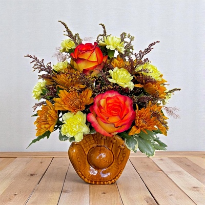 Let them know what a catch they are with this adorable baseball glove vase filled with coordinating blooms!